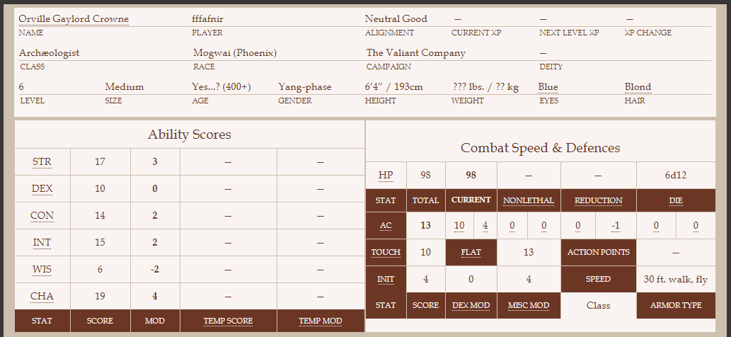 Full HTML Dungeons and Dragons 3.5th Edition Sheet: Inline CSS Version